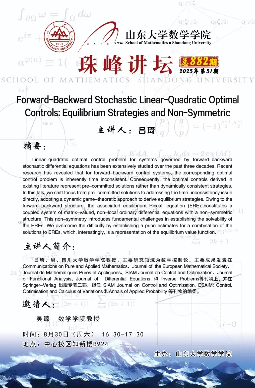 下一条:BB贝博艾弗森官网珠峰讲坛第881期:Observability inequality, log-type Hausdorff content and heat equations