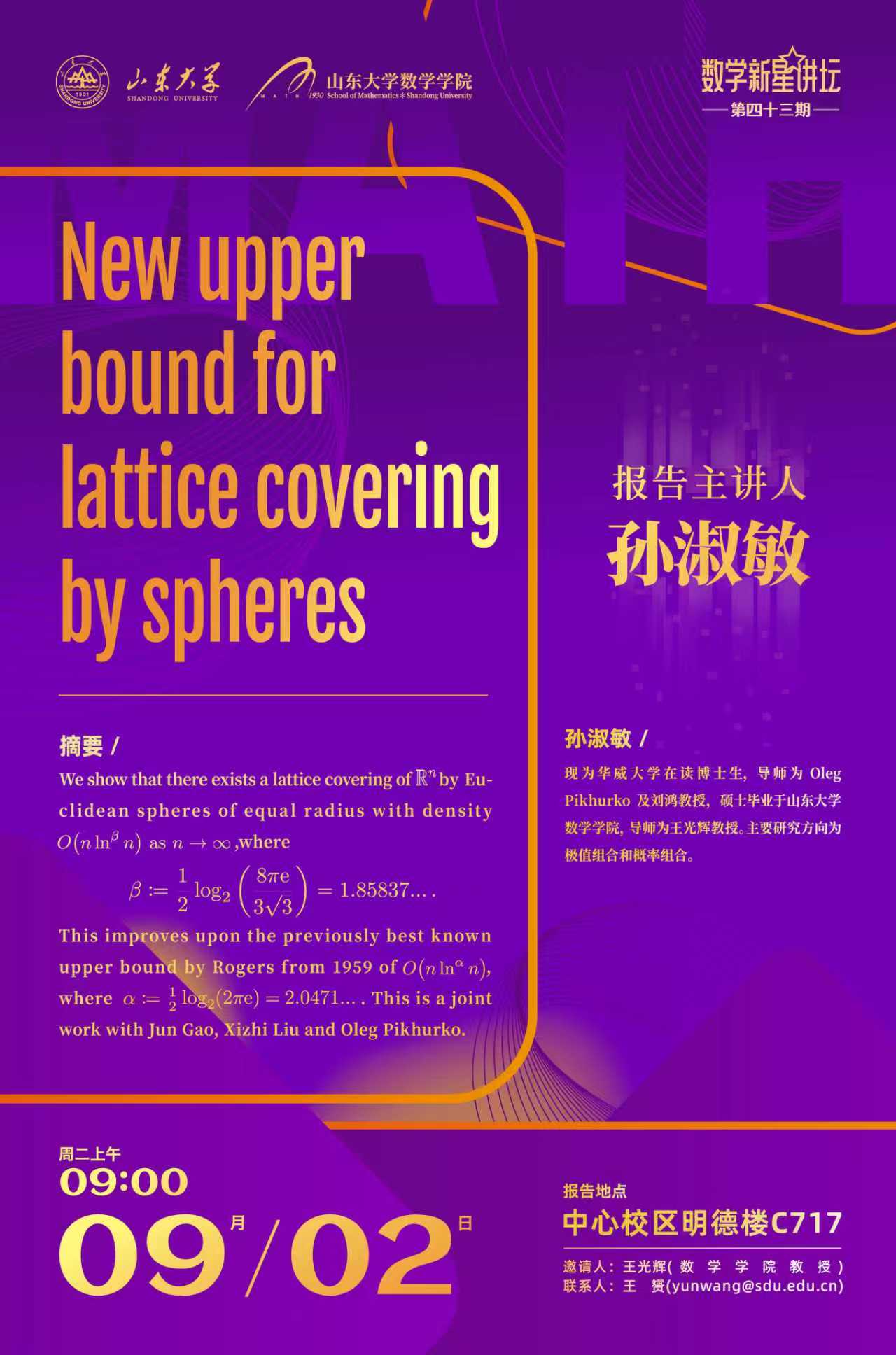 上一条:BB贝博艾弗森官网新星讲坛第44期:Set families: restricted distances via restricted intersections