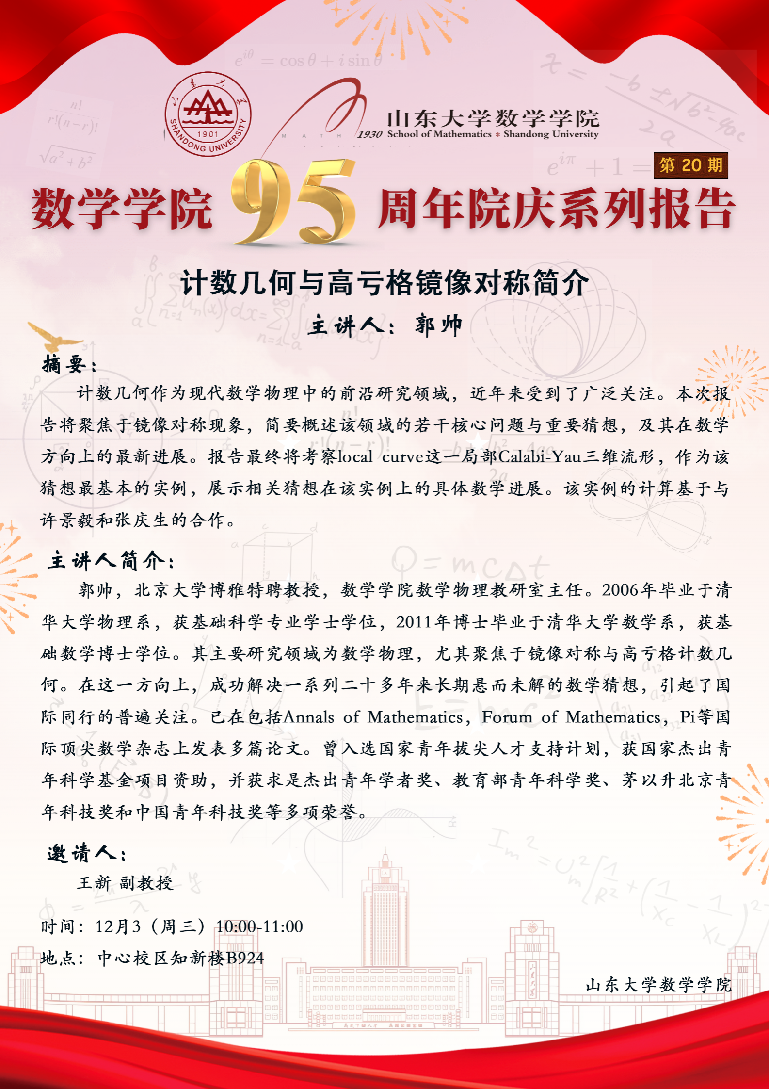 上一条:BB贝博艾弗森官网95周年院庆系列报告第21期:超矩阵的几何结构初探(Exploring Geometry of Hypermatrix)