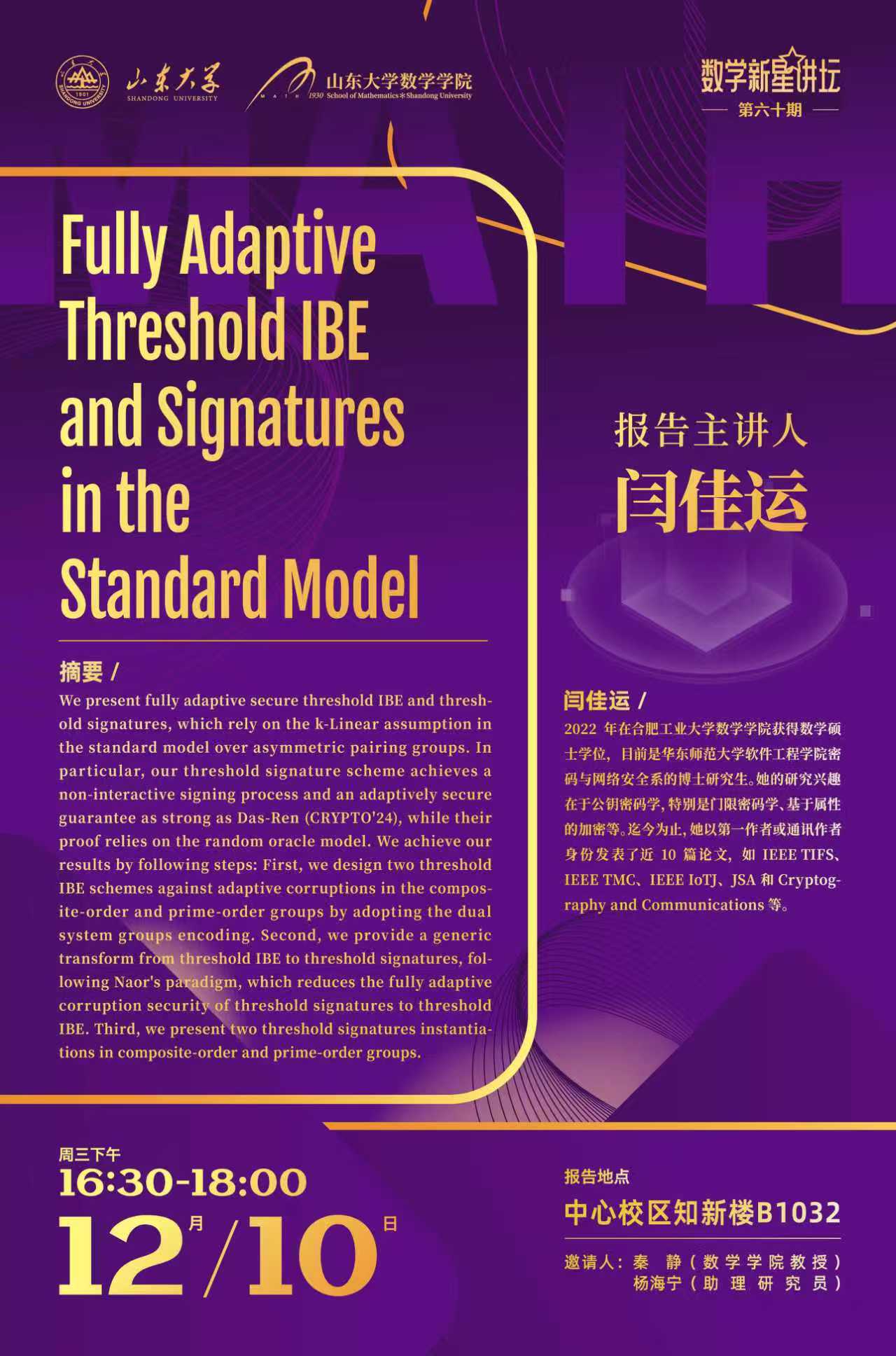 上一条:BB贝博艾弗森官网珠峰讲坛第918期:分布式属性基加密