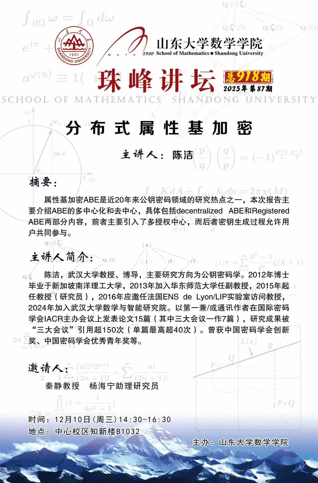 上一条:BB贝博艾弗森官网95周年院庆系列报告第22期:数代数簇上曲线的个数
