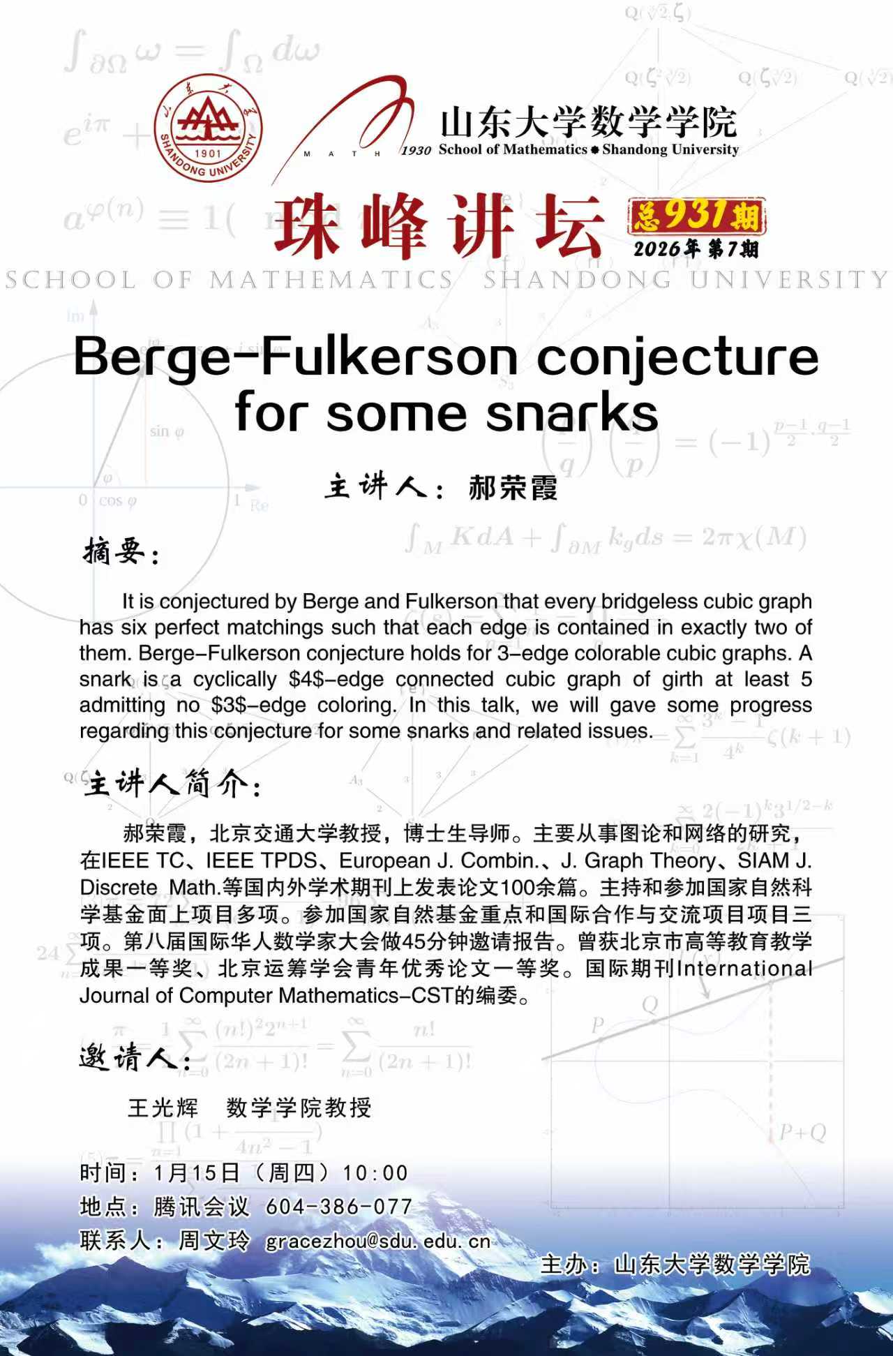 上一条:BB贝博艾弗森官网珠峰讲坛第932期:On the maximum diversity of intersecting families in the symmetric group