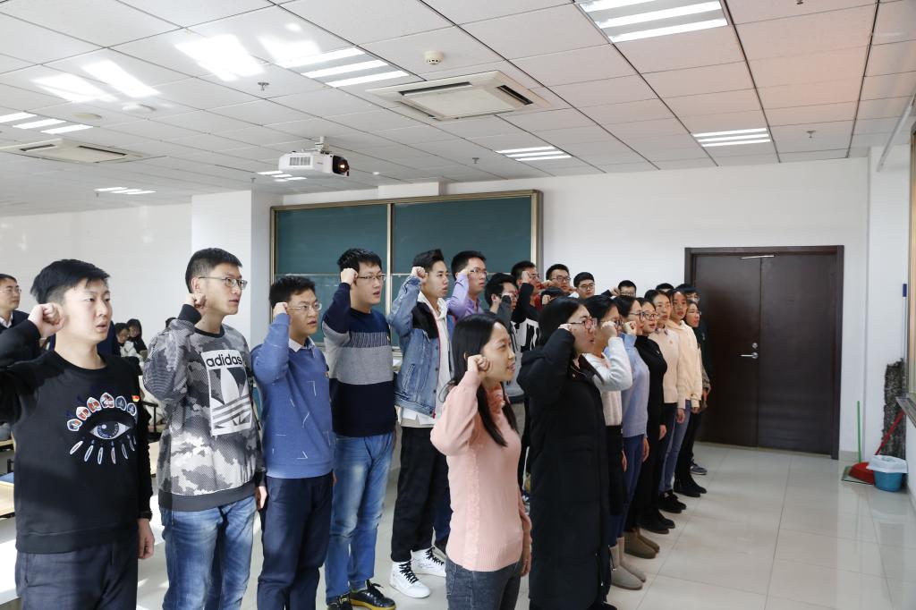 新党员宣誓仪式在《国际歌》声中拉开了序幕。全体党员举起右手,面向党旗庄严宣誓,表达了全体党员坚定的入党信念和为共产主义事业奋斗终生的决心。