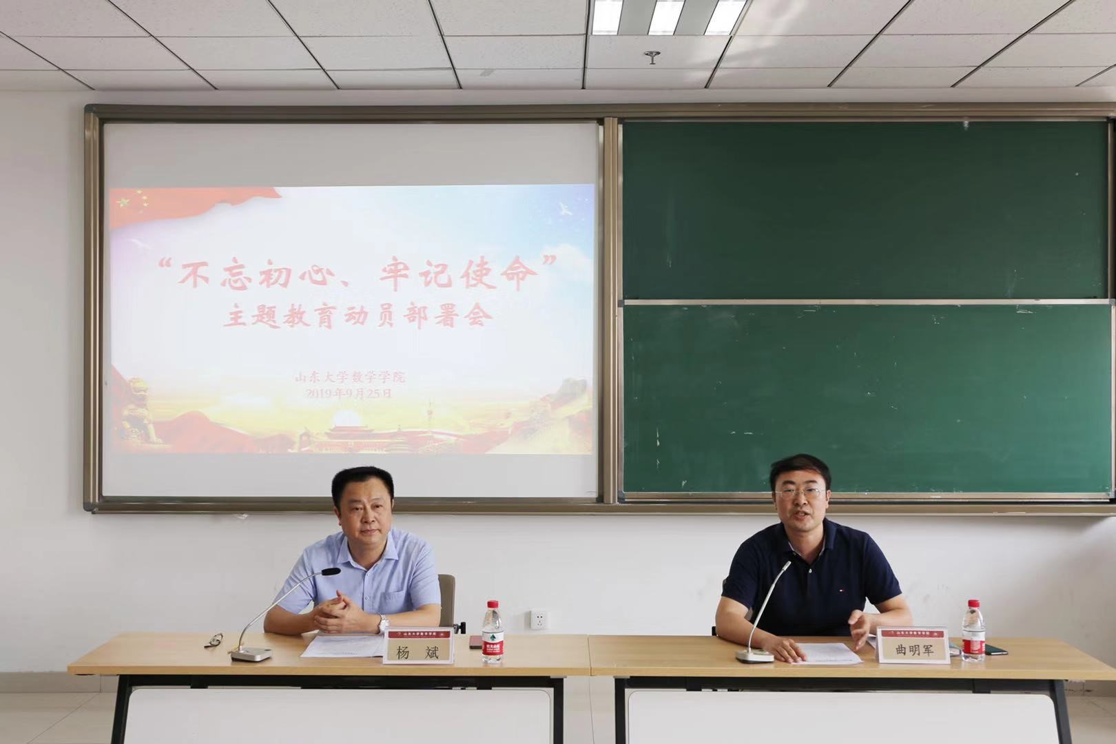 9月25日下午,BB贝博艾弗森官网在知新楼B924会议室召开“不忘初心、牢记使命”主题教育动员部署会。学校第二指导组组长杨斌同志出席会议并讲话。第二指导组成员王永军同志、杨俊娇同志出席会议。学院党委领导班子成员、各党支部书记以及师生员工党员代表参加会议。会议由学院党委书记曲明军同志主持。