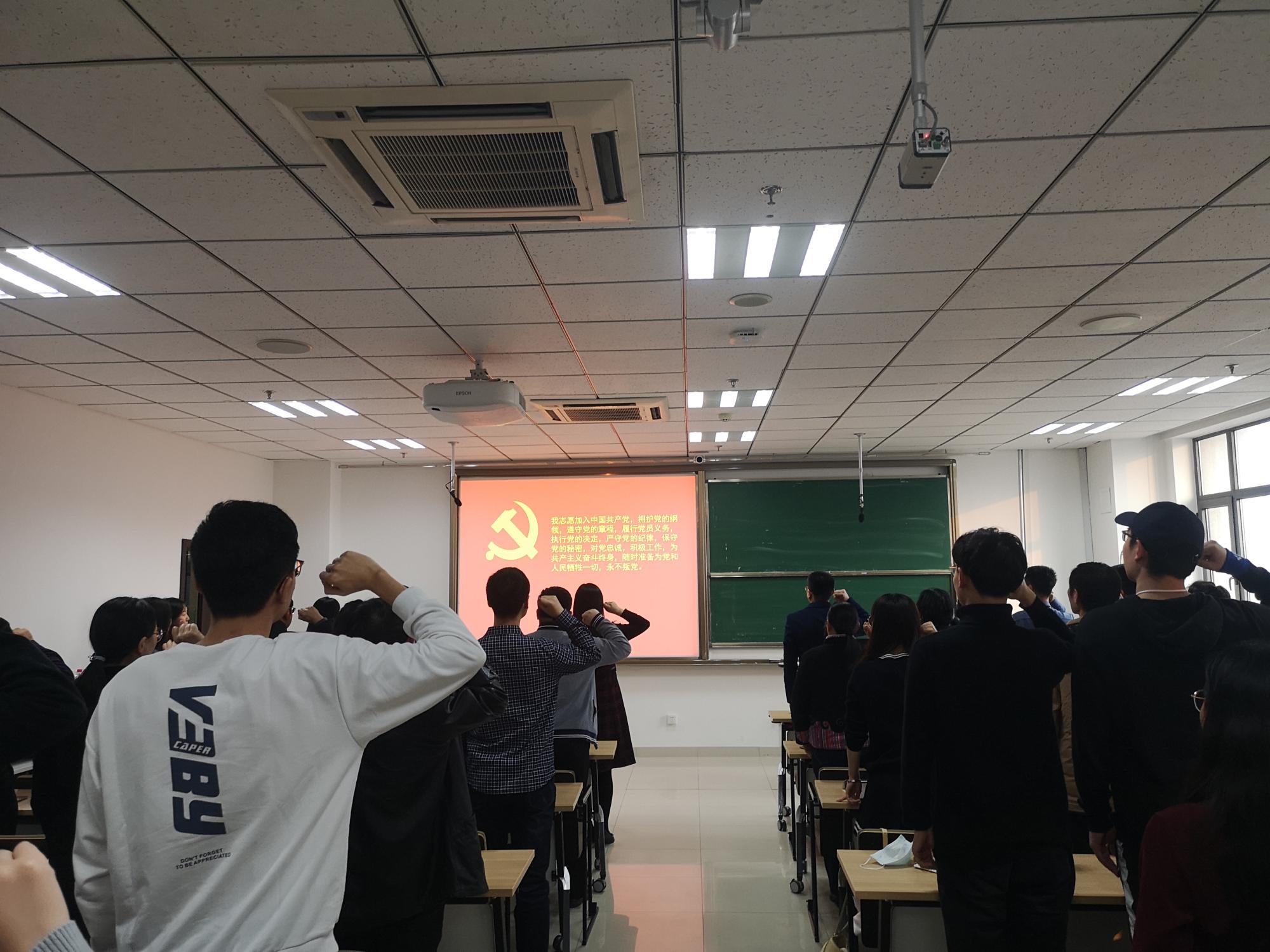 最后,全体党员在党旗前进行了庄严宣誓。