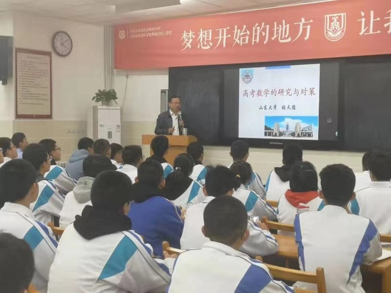 为充分践行教育部提出的“高考以大学需求为导向”指导意见,进一步将高校智力资源对接到高中学校,BB贝博艾弗森官网与山东教师教育网共同打造了全省首批5所高考数学教学试点高中。11月15日-20日,双方项目参与人员共同走访调研了山东省泰安英雄山高级中学和济南大学城实验高中两所试点学校,为试点校送去“一节课、一堂讲座、一次调研”,进一步挖掘高中学校需求。