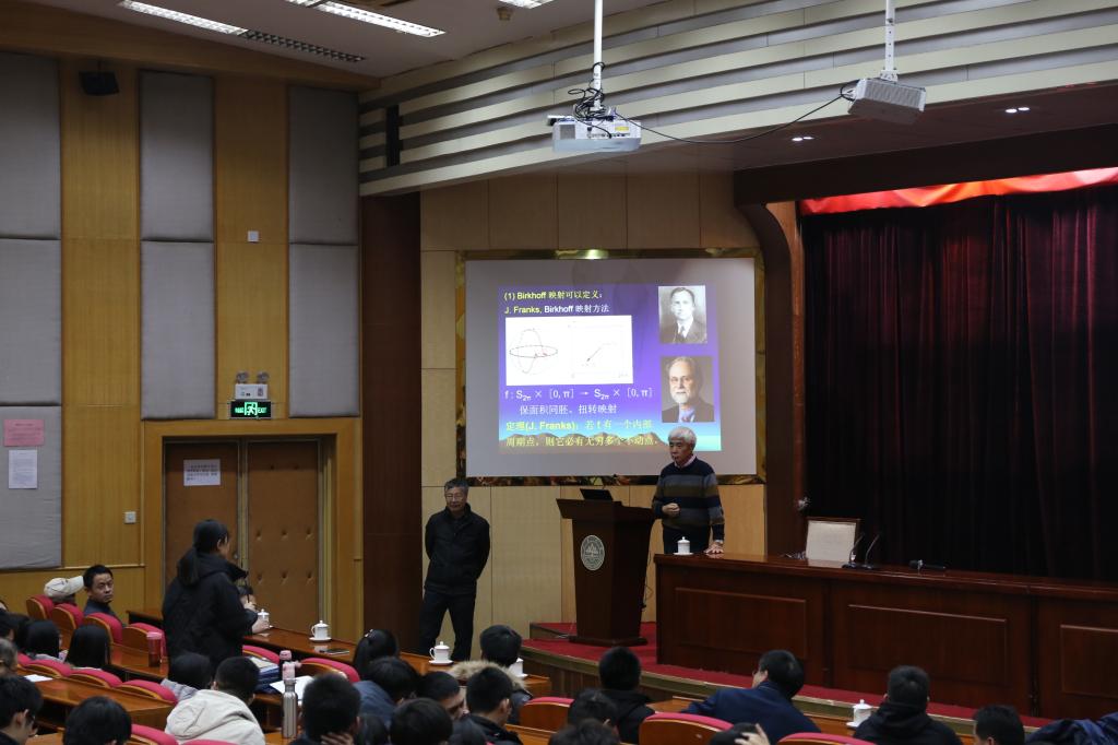 龙以明院士简要讲述《八十天环游地球》中一位英国绅士在1872年环游地球的故事,介绍与之紧密相关的数学概念——闭测地线,简要介绍与其相关的数学理论和对此领域的发展做出重要贡献的著名数学家的故事。希望能从中体会到这些数学家是如何建立其新方法、新理论,开创新领域、解决重大问题。在报告的最后,龙院士引用了爱因斯坦的一句名言“不要担忧你在数学上遇到的困难,我可以向你保证,我遇到的困难更大……”告诉我们科研工作者需要保持好奇心、打好专业基础、全面认识课题、同时需要持之以恒的积累和创新性思维。
