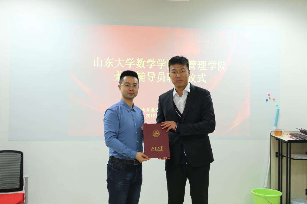 随后,石岩和路云生为纪祥颁发了聘书。纪祥在讲话中首先感谢学院领导们的信任,他表示将尽到一名辅导员的义务,同各位领导老师一道,为两院的体育育人工作贡献自己的力量。