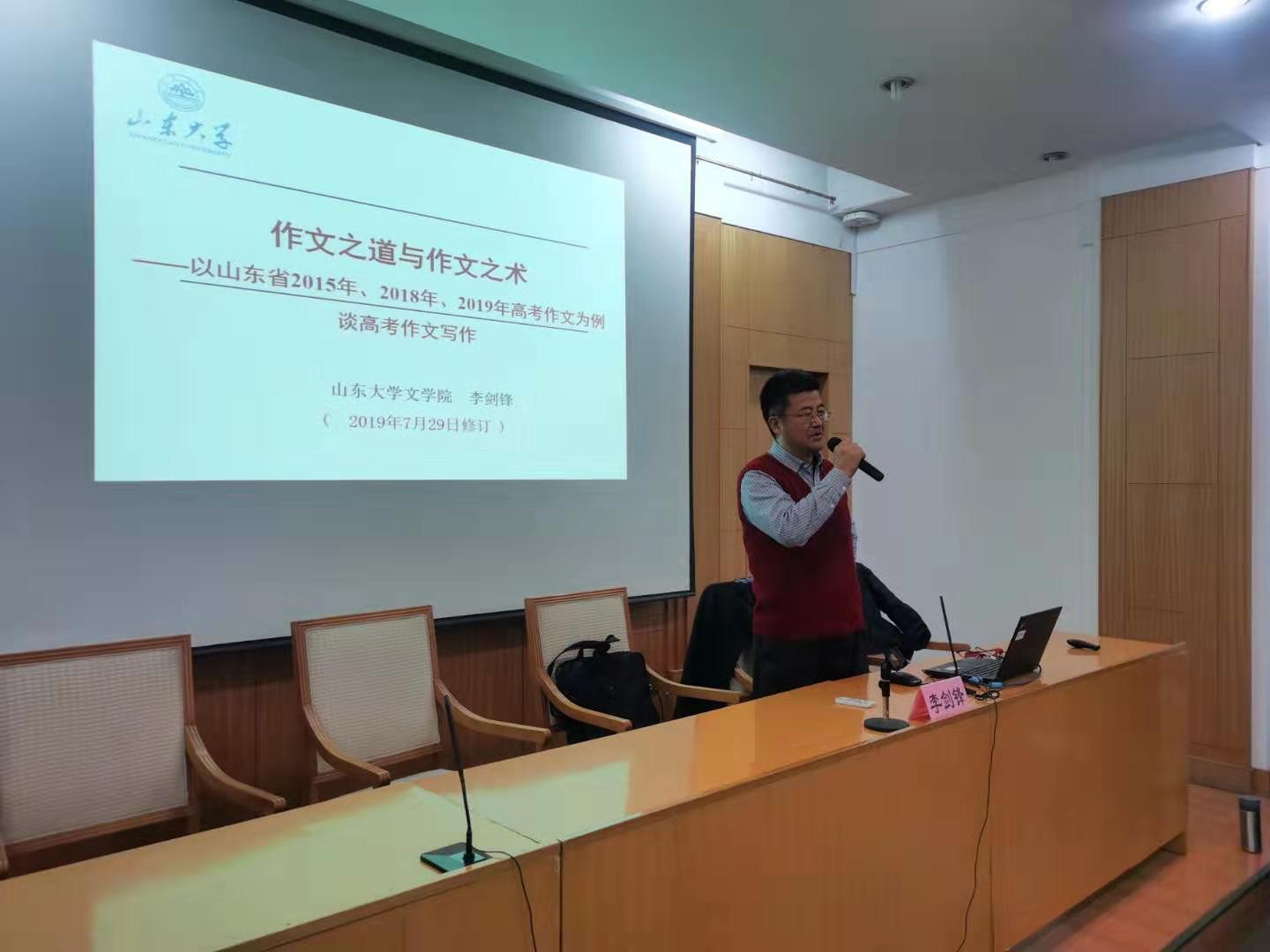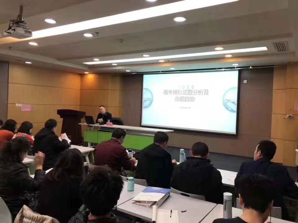 模拟高考分析环节设立数学、语文两个分会场,分别由齐鲁师范学院中小学远程教育中心项目办主任宁波和BB贝博艾弗森官网服务地方办公室主任尹上担任主持。BB贝博艾弗森官网崔玉泉教授、济南市教研员数学教研员安学保主任就数学模考试题和2020年高考趋势进行了细致分析和预测,并对备考策略提出诸多建议;BB贝博艾弗森官网文学院李剑锋教授从高考作文入手,强调高考语文越来越重视对学生语文素养的考查,为参会一线老师详细解读了作文之道与作文之术,并对高中语文教学提出建议和希望。
