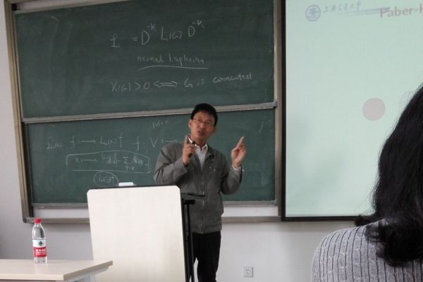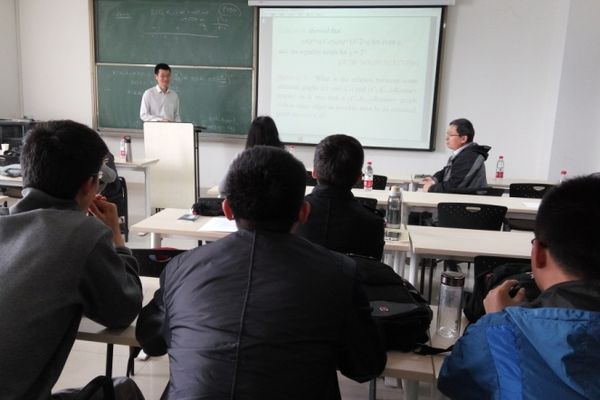 4月8日上午,应BB贝博艾弗森官网颜谨教授邀请,南京大学陈耀俊教授和上海交通大学张晓东教授来BB贝博艾弗森官网,分别作了题为“The Dirichlet eigenvalues of graphs and the Faber-Krahn Inequality”和“Polarity graphs and Ramsey number R(C4, K1,n)”的学术报告。报告由BB贝博艾弗森官网吴建良教授主持,BB贝博艾弗森官网和山东师范大学BB贝博艾弗森官网的部分老师和研究生参加了此次报告。