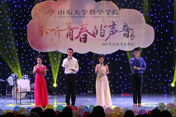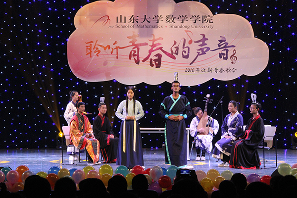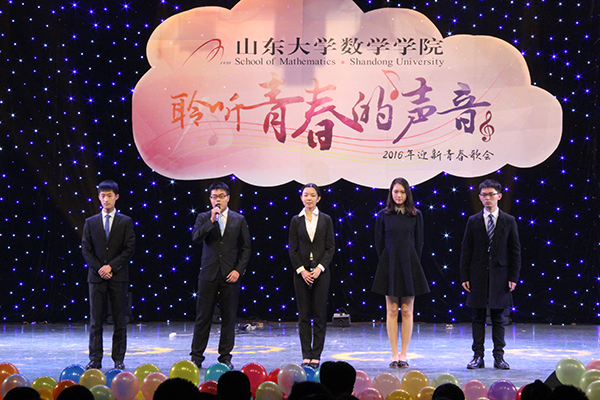 此次晚会,不仅包含百花齐放的文艺节目,更囊括饱含现实意义的优秀学长学姐的励志寄语。2016年国家奖学金获得者的各位同学和学生会、学生新闻中心等各学生组织及各学生社团负责同学从各自的角度热情寄语和勉励新同学刻苦学习、全面发展。在美国、英国、法国、加拿大等国家一流高校留学和访学的师兄师姐的温馨视频表达了对母校的思念和祝福,他们热情祝贺2016级新同学考入山大数院,以“我与数学共辉煌”的标语勉励新一届莘莘学子。榜样的力量为2016级新同学指明了学习和奋斗的目标。
