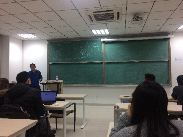 12月21日下午,上海数学中心研究员吴河辉受邀来到BB贝博艾弗森官网,作了题为《Graph partition under average degree condition》的报告。BB贝博艾弗森官网王光辉教授主持了此次报告,BB贝博艾弗森官网吴建良教授及运筹学与控制论专业的部分研究生参加了此次报告。