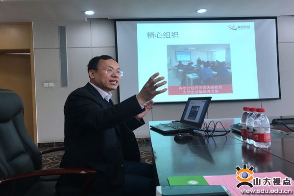 张天德教授始终认为,学生是要超越老师的。“放至全国而言,若学生都不能有所成就超越老师,那么整个国家如何一步步向前发展?”他对学生没有保留,对同行也没有。外出交流时,他非常乐意与人分享山大的学科建设经验。对此他的理解是,“闭门造车不是有效率的进步方式,当你将1.0版本传授于他人时,自身也要继续学习、超越自己,不断提高到2.0版、3.0版。”这是张天德教授的“大教育观”,建立起良性的循环系统,在交流中互相进步、不断超越。