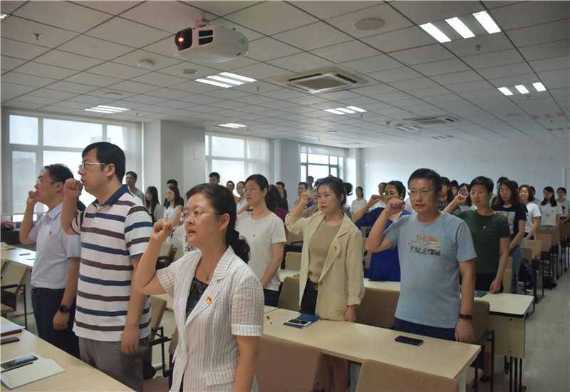 6月28日上午,BB贝博艾弗森官网在知新楼召开2018年度新党员入党宣誓大会,12名预备党员在老党员的见证下面对党旗庄严宣誓。学院党委书记曲明军,教师党员以及部分入党积极分子出席会议。会议由学院党委副书记路云生主持。