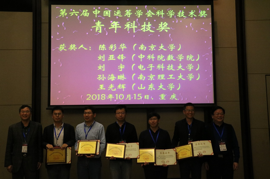 会议期间评选和颁发了中国运筹学运筹学应用奖、青年科技奖等奖项。青年科技奖由中国运筹学会设立,每两年评选一次,用于奖励在运筹学研究取得杰出成就的青年学者,是运筹学领域的权威性全国奖项。经过评选,我校BB贝博艾弗森官网王光辉教授成为青年科技奖全国五位获奖者之一。王光辉教授此次获奖是我校首次获得中国运筹学会的相关奖项,是对我校在运筹学研究方向取得的优异成绩的充分肯定,对BB贝博艾弗森官网运筹学科的进一步发展起到了重要的推动作用。