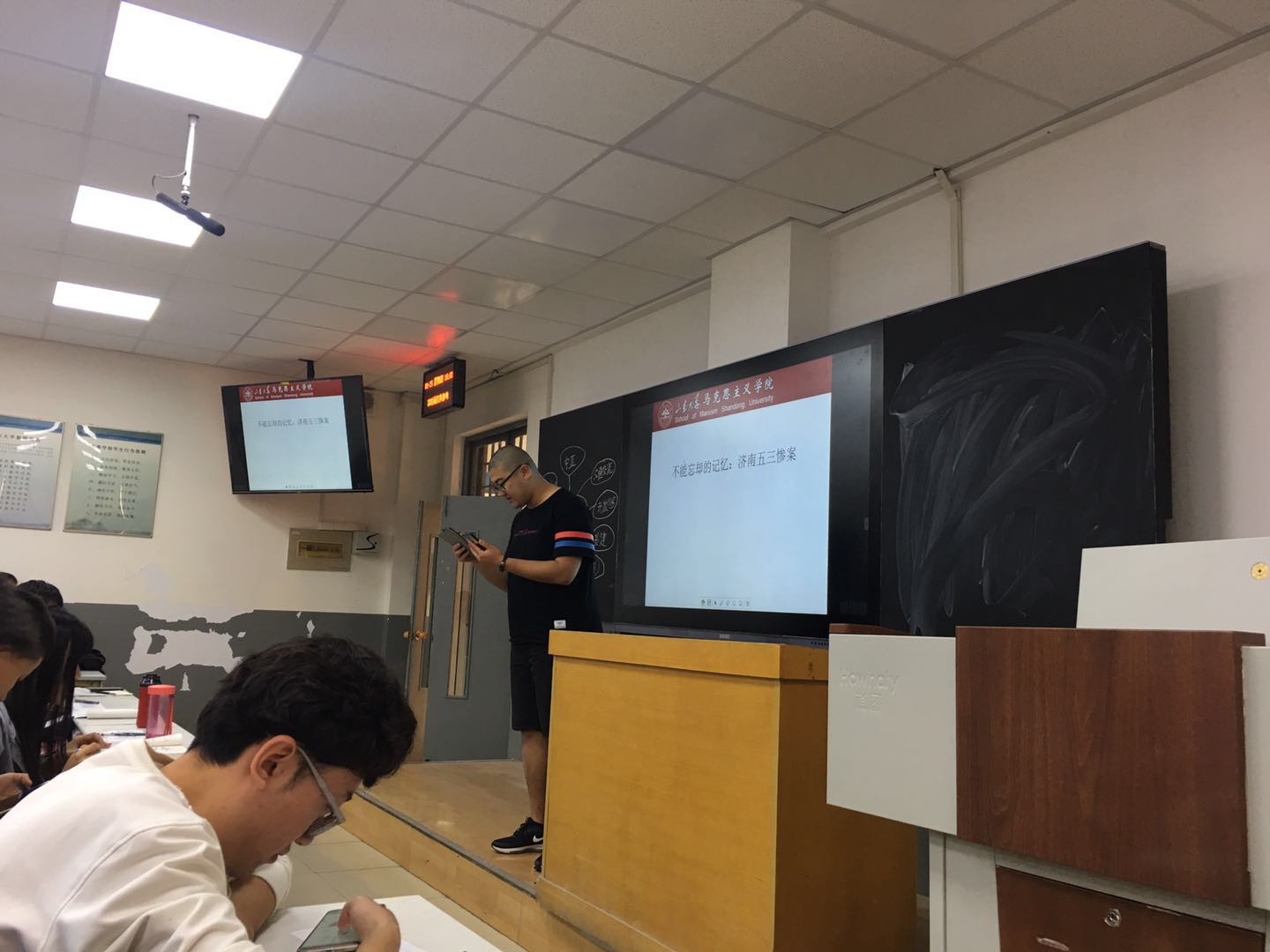 大家在主讲老师和讨论同学的带领下一起观看了“济南五三惨案”的视频资料,回顾了惨案发生时的国际国内历史背景,了解了惨案的事实原委,总结了五三惨案的教训启示。历史证明,抗日民族统一战线是民族自我救赎的必由之路,民族团结是弱国抵御强敌的唯一途径,构建人类命运共同体是彻底杜绝民族冲突、人间惨剧的最高解决路径。只有所有人能站在人类命运共同体的高度思考人类整体的命运,才不至于对自己的同类如此痛下杀手。