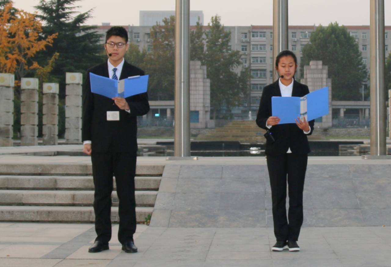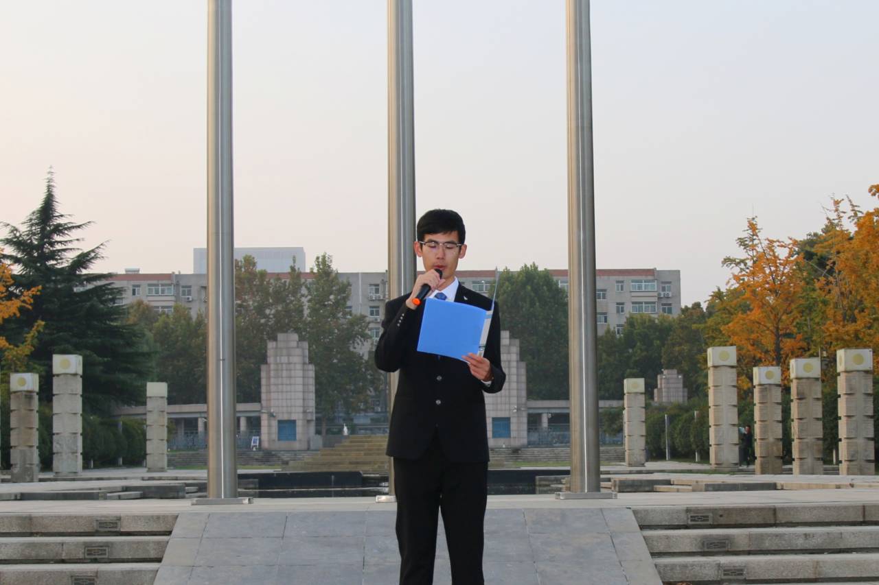 11月2日上午6时30分,尽管渐入冬日的济南已有明显寒意,我院新生辅导员桑军帅老师和全体2020级本科生仍怀着饱满的精神和热情齐聚大成广场。在院学生会主席杨世培的主持下,升旗仪式正式开始。