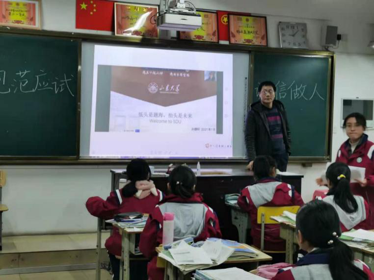 BB贝博艾弗森官网“相约山大·励志起航”优秀学子母校回访社会实践活动在寒冬里顺利举行,为响应国家防疫号召,此次活动采用线上线下相结合的方式开展。山东省397社会实践团队通过线下宣讲,结合精心制作的照片,向学弟学妹们全面细致地介绍了BB贝博艾弗森官网的历史文化和真实的山大校园生活,吸引了同学们的兴趣,使大家对山大好感倍增;同时,团队在线上宣传中,通过录制宣讲视频、组织直播等方式,讲述了山大相关专业的人才培养计划、师资力量、办学条件以及招生政策,同时着重向学弟学妹们介绍了BB贝博艾弗森官网的数学专业,展示了山大数院强大的办学实力和辉煌成绩。队员们在宣讲结尾祝福学弟学妹们金榜题名,表达了BB贝博艾弗森官网对迎来更多优秀学子的期待。