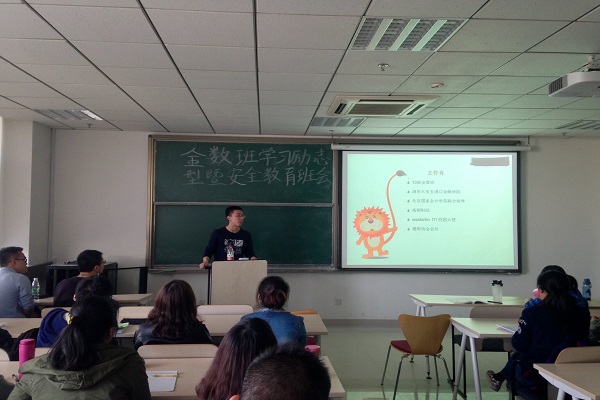 4月20日下午,BB贝博艾弗森官网2014级金融数学与金融工程班于BB贝博艾弗森官网中心校区知新楼B座召开了本学期学习励志型暨安全教育班会。会议由班长余鹏主持,BB贝博艾弗森官网2013级统计班唐肖潇、2013级统计班廉锐、2013级信安班刘新明及经济学院2013级金数班王帆、王作舟同学与大家分享出国、保研与考研经验。2014级金数班全体成员参加了这次班会。