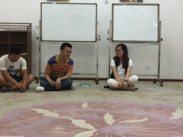 首先,是中国传统的握手礼,大家互相握手,感受彼此的温度,心与心之间的距离拉得更近了。经过简单的“我开心”的分类方式,大家平均分成三组坐在一起,再一次介绍自己的名字、家乡和爱好,并且利用“串糖葫芦”的方式寓教于乐使得大家可以记住彼此更多的信息。
