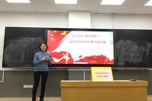 随后,伴随着舒缓的音乐,张亚琪带领大家回顾改革开放四十周年的艰苦奋斗历程,四十周年的成就证明这一理论是正确的,我们必须总结经验,乘势而上,继续推进国家治理体系和治理能力现代化,坚定不移扩大开放,使改革和开放相互促进、相得益彰。中华民族伟大复兴必将在改革开放的进程中得以实现。王宇瑶结合自身经验鼓励大家学习,才能为国家富强添一份力。