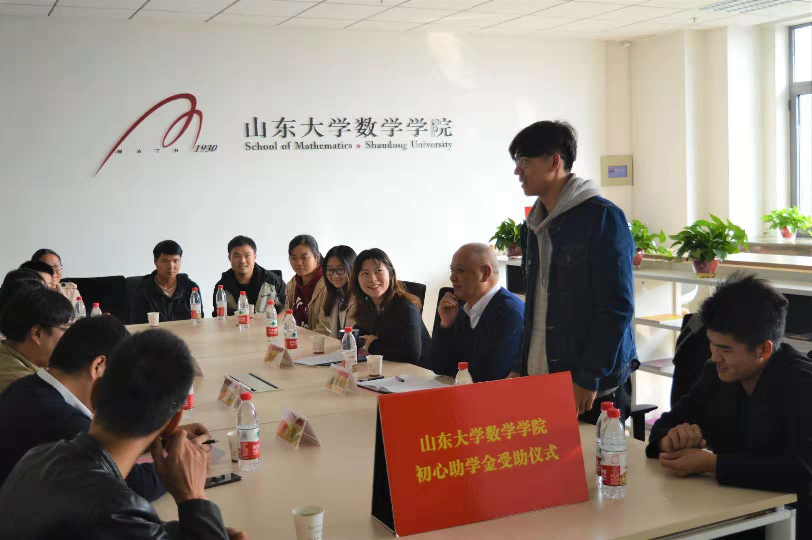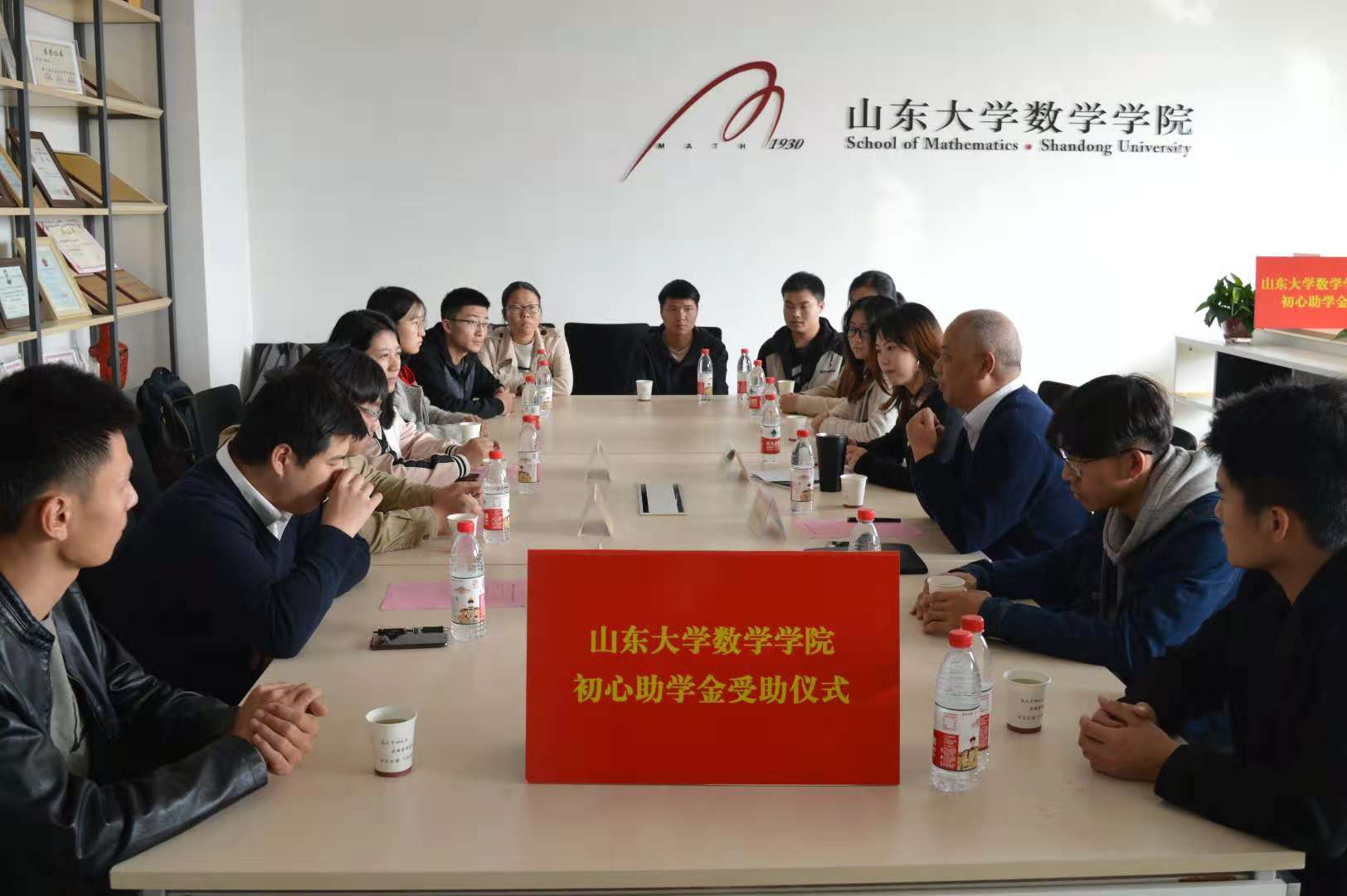 仪式伊始,芮洪兴副院长致辞。他介绍了我院学生的基本情况,并代表学院感谢捐赠人对BB贝博艾弗森官网学生的关心和帮助,希望在学校、学院和社会的共同努力下,同学们能够“不忘初心”,奋发图强。随后,陈一栋先生在讲话中提到设立“初心助学金”的初衷,希望其能够通过努力,集结社会的力量,为经济困难、品学兼优的学生的顺利成长尽到自身责任。郑柔澄老师宣读了受助学生名单,并表示初心助学金是我院第一项正式的社会助学基金,希望它能帮助同学们顺利完成大学学业、减轻家庭负担;同时也希望通过“初心助学金”的设立,吸引更多的企业和社会贤达关注关心大学生成长成才,惠及更多学子。在交流座谈环节中,受助学生分享了自己的心路历程和受助感想,表示了对捐赠人及学院老师的感恩之情,以及今后努力学习生活、回馈社会的决心。受助仪式结束后,全体参会人员合影留念。