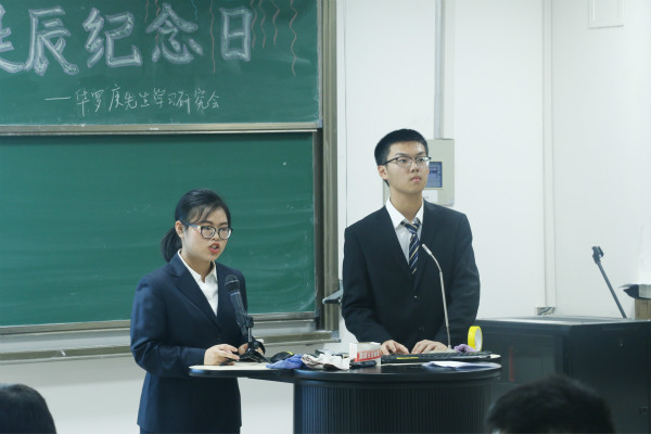 活动首先介绍了我国著名数学家华罗庚先生的生平,华罗庚协会成员演出的小剧场重现了华罗庚先生成长过程中的几个片段,用富有张力的表演表现了华罗庚先生人生的几个重要时间节点。同学们在津津有味的小剧场中了解了更多关于华老的事迹与精神,对华老的成长历程有了更直观的认识