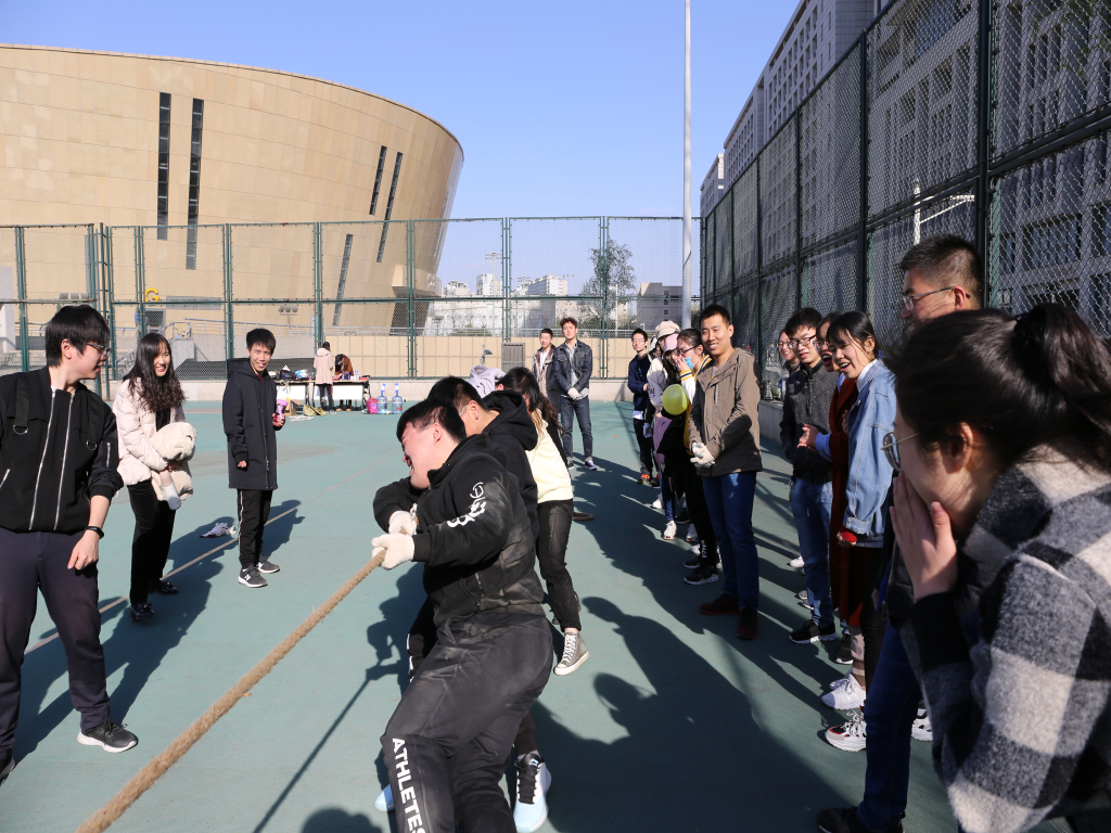 为增加趣味性,在师生运动会中研究生还特别举办了趣味运动项目。无论是“背靠背”,“三人四足”还是“猛龙过江”,无一不在反映出策划者的良苦用心,既体现了运动员之间的相互协作精神又不失勇夺第一的进取心。最能为同学们带来欢声笑语的当属“人体copy”这个项目,动作者和猜谜者的“貌合神离”使得大家忍俊不禁,两人的“心领神会”又时而赢得大家的拍案叫绝,此次趣味运动会的重头戏当属压轴“拔河”,这个项目旨在考验研究生班级的竞争意识和集体凝聚力,“心往一处想,劲往一处使”这正体现了当代研究生只有“相互合作”,才更能“互利共赢”的道理。比赛过程中,路云生积极与学生进行互动,现场情绪一度高涨,展现了学院和谐融洽的师生关系。场上笑逐颜开,场下温情浓浓,同学上前主动要求帮忙工作人员的情况时有发生,显示了我院学生积极向上的精神风貌,彰显了BB贝博艾弗森官网同学的凝聚力。最终,BB贝博艾弗森官网第一届师生运动会研究生趣味项目以综合成绩一班第一名,二班第二名,三班第三名圆满结束。