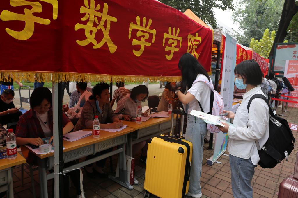 上午8时,一个个肩负背包、手拎行李箱的身影,陆陆续续地出现在报到现场。来自五湖四海的2020级新生们踏进了校园翠绿的土地,如新秋的阵阵清风,开启了清新的研究生生活。现场工作人员依次为萌新们确认返校码,发放校园卡、出入证以及研究生手册,有条不紊地进行着报到程序。在疫情防控政策的统一要求下,本届新生入学家长无法陪同,需要独自进入校园,但迎接他们的是早已在校门口、迎新点前、宿舍楼下等候多时的志愿者们。搬行李、指道路、答疑问,志愿者们热情亲切地帮助着学院的新成员。
