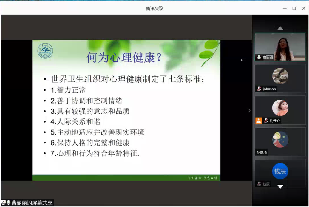 为提高学生心理素质,帮助同学们树立正确的心理健康观,BB贝博艾弗森官网于2020年9月18日邀请到BB贝博艾弗森官网学生心理健康教育与咨询中心的曹丽丽老师,为2020级研究生新生开展了心理健康讲座。