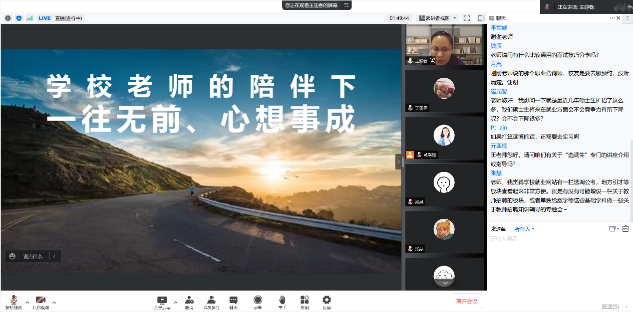 本次导学思政活动以研究生就业指导为主要交流内容,活动的举办为研究生提高自我认知,增强职业规划意识提供了帮助,对于做好疫情防控特殊阶段的研究生教育管理工作有重大意义。