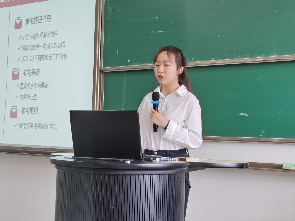 开幕式后,大会审议并通过了《BB贝博艾弗森官网研究生会章程(草案)》。随后,研究生会主席丁圣男作题为《革故鼎新 锐意进取 团结合作 继往开来》的工作报告,她回顾了研究生会在组织改革、服务成长、特色工作三方面所做出的努力与成果。鲁皓为2021届研究生会骨干成员颁发证书。
