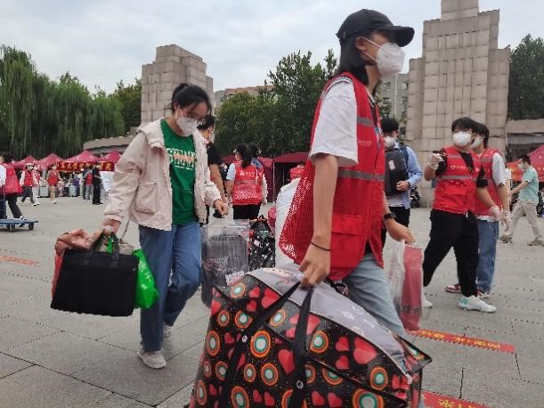秋风送爽,丹桂飘香。数往知来,研途启航,开启“数”于我们的新篇章。身穿红色马甲的志愿者们坚守在各个站点等候着来自祖国各地的莘莘学子。迎新工作正在如火如荼地进行中,工作人员依次为萌新们进行扫描新生码、发放校园卡、登记信息以及派发入学大礼包。志愿者们忙碌的身影随处可见,小萌新们带着对新环境的好奇踏入校园,热心的志愿者们不厌其烦地为新同学解答一个个疑问。工作人员以及志愿者们协同合作,高效完成各项任务,现场秩序井然。学院领导老师们也多次来到活动现场对工作人员进行指导,让新同学在入学之初就感受到了学院的亲切关怀和温暖。