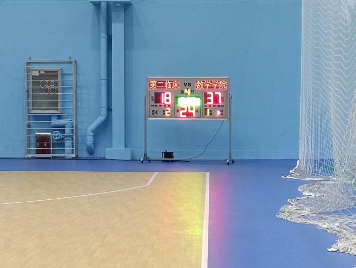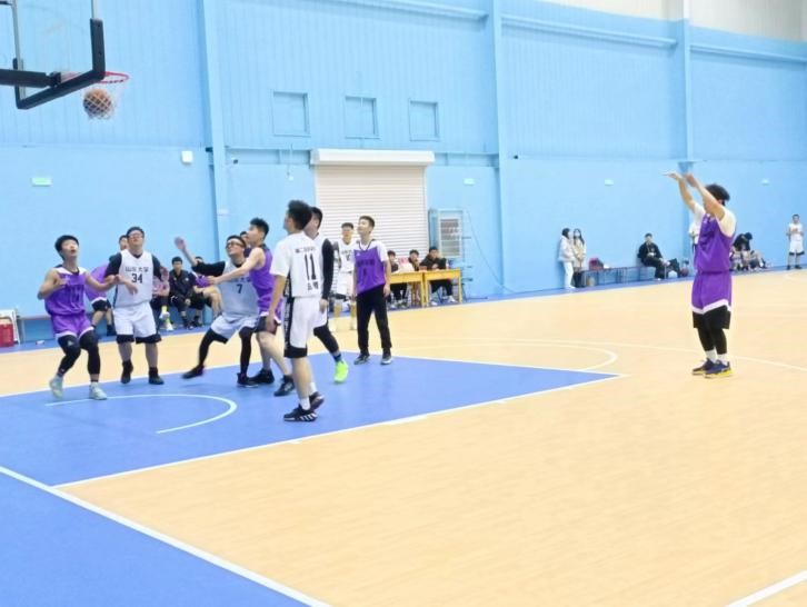 短暂的休息过后,下半场比赛继续,我院队员的状态越来越好,13号宋金灿与11号李官栩默契配合,掌握控球权,我方20号庞瑞迅速抓住队员创造的机会,投中下半场第一个三分球。紧接着,我方主动出击,23号张乾坤再次投中三分球,比分扩大到29:7。双方在接下来的十几分钟里各有球入篮,但我院依然保持着之前的领先优势,比分来到了33:10。比赛接近尾声,双方队员更加积极地跑动,激烈的拼抢和身体的对抗引来阵阵掌声。我院最终以37:18的比分赢得这场比赛。