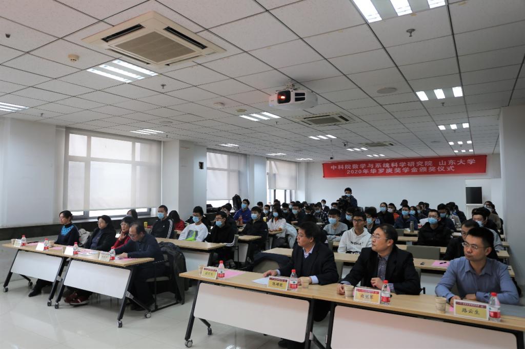 2020年12月10日,中国科学院数学与系统科学研究院——BB贝博艾弗森官网“华罗庚奖学金”颁奖仪式在BB贝博艾弗森官网中心校区举行。华罗庚先生之女华密女士,中国科学院数学与系统科学研究院副院长巩馥洲、研究生部主任邵欣、研究生部副主任刘霞,中科院院士、BB贝博艾弗森官网教授彭实戈,BB贝博艾弗森官网党委书记曲明军、党委副书记路云生、获奖同学和学院师生代表参加了颁奖仪式。仪式由BB贝博艾弗森官网院长陈增敬主持。