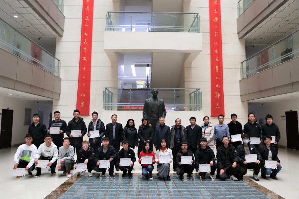 曲明军宣读了《关于表彰2020年度华罗庚奖学金获得者的决定》。获奖代表2019级学生徐丰在发言中介绍了自己在华罗庚班的学习情况,他由自身经历谈起,表达了对班级的感激之情,并表示自己将不辜负老师们的殷切期望,努力学习为数学学科的发展贡献自己的力量。