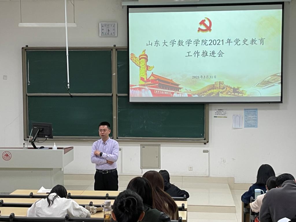 动员部署党史学习教育工作。学院党委分别召开党委会、支部书记会议、辅导员会议、学院教工大会,讨论出台学院党史学习教育工作方案,动员部署党史学习教育工作。学院党委书记曲明军在动员会议中表示,要坚决贯彻落实中央部署要求,确保党史学习教育取得实实在在的成效。一是要理解“为什么学”,进一步提高开展学习教育的思想自觉和行动自觉;二是要清楚“学什么”,准确把握学习教育的目标要求、重点任务和工作安排,结合学院实际,坚持问题导向;三是要紧扣“怎样学”,着力在学做结合中确保学习教育落地见效。扎实推进党史学习教育,把开展党史学习教育作为重大政治任务,筑牢信仰之基,传承红色基因,砥砺政治品格,把学习教育成效转化为高质量谋划“十四五”数学学科事业发展的强劲动力。