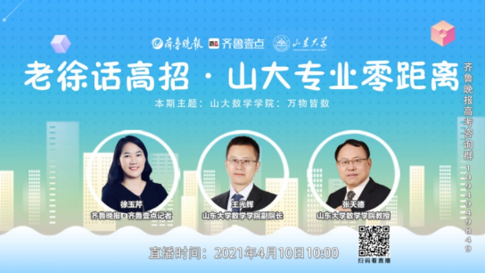 4月10日,BB贝博艾弗森官网党委书记王光辉、教授张天德做客齐鲁晚报·齐鲁壹点“老徐话高招”直播间,认真细致地向老师同学们介绍了BB贝博艾弗森官网的发展历程及2021年的招生计划,从学院历史底蕴、人才培养、招生录取等方面对山大数学学科进行了宣传。王光辉用三个关键词对BB贝博艾弗森官网进行了概括,即“历史悠久,底蕴深厚”“学科交叉,创新发展”“科教协同”。通过平易近人的讲述,两位教授为老师同学们展现出了一个学科蓬勃发展、人才辈出的山大数学学科。