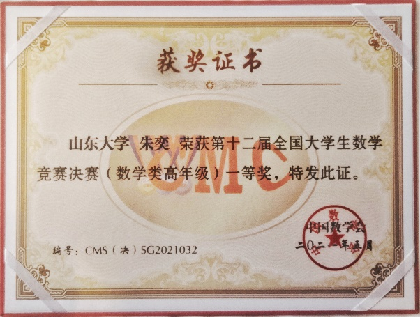 5月15日,第十二届全国大学生数学竞赛决赛在吉林大学举行。经评审,BB贝博艾弗森官网17名参赛学生共获一等奖2项、二等奖8项、三等奖7项,其中朱奕、熊邝淼获得一等奖,山大学子再次取得优异成绩。