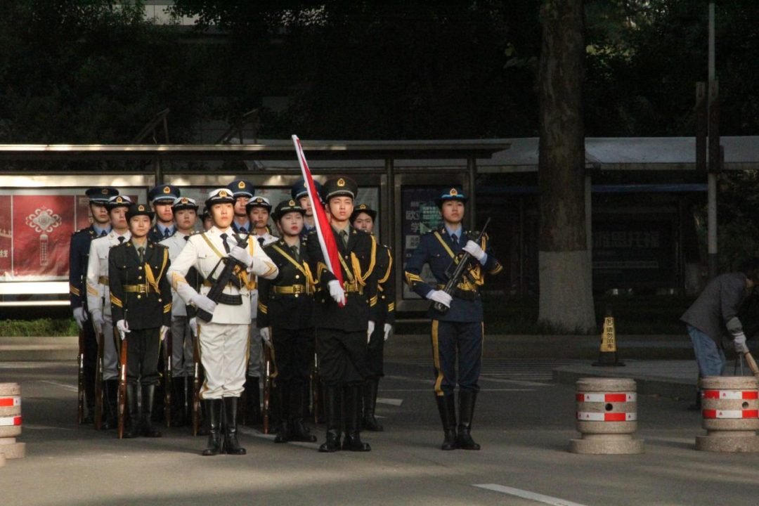 在鲜艳的五星红旗引领下,国旗护卫队护送着国旗进入了大成广场,铿锵步伐踏碎晨曦的寂静,青春朝气点燃激情的火焰,队员们一个个意气风发,斗志昂扬。在同学们的注视下,国旗在庄严的国歌中冉冉升起。