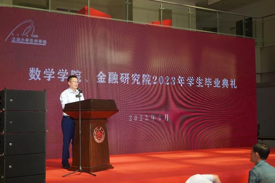 王光辉在致辞中肯定了同学们取得成绩,并祝贺同学们顺利毕业。他表示,同学们努力拼搏、奋勇争先,为数学学科争得了荣誉,同学们积极争取、把握机会,都找到了发挥自己才华和潜力的平台。这段经历,对于大家走向社会后准确把握时代洪流中个人的定位,把个人价值的实现和对社会的贡献有机地结合起来,具有重要意义。同时,他以“青春报国”为主题,给同学们提出三点希望:一要胸怀祖国,以青春怀爱国之情;二要勇攀高峰,以青春树强国之志;三要砥砺奋进,以青春践强国之行。