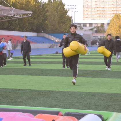 本次趣味运动会设师生联动项目、学生趣味项目以及教工趣味项目三大类,共有众星捧月、运转乾坤、俄罗斯方块、障碍接力赛、气拔山河、旱地龙舟、摸石头过河等七项趣味活动。田径场上,有运动员们跨过重重障碍物奋力跑向终点的矫健身姿,也有智力与速度相结合的厚积薄发。旱地龙舟项目中运动员们齐力前进,众星捧月项目中运动员们聚精会神,拔河运动员们在一声声震耳欲聋的加油呐喊中撸起袖子展现集体风采。