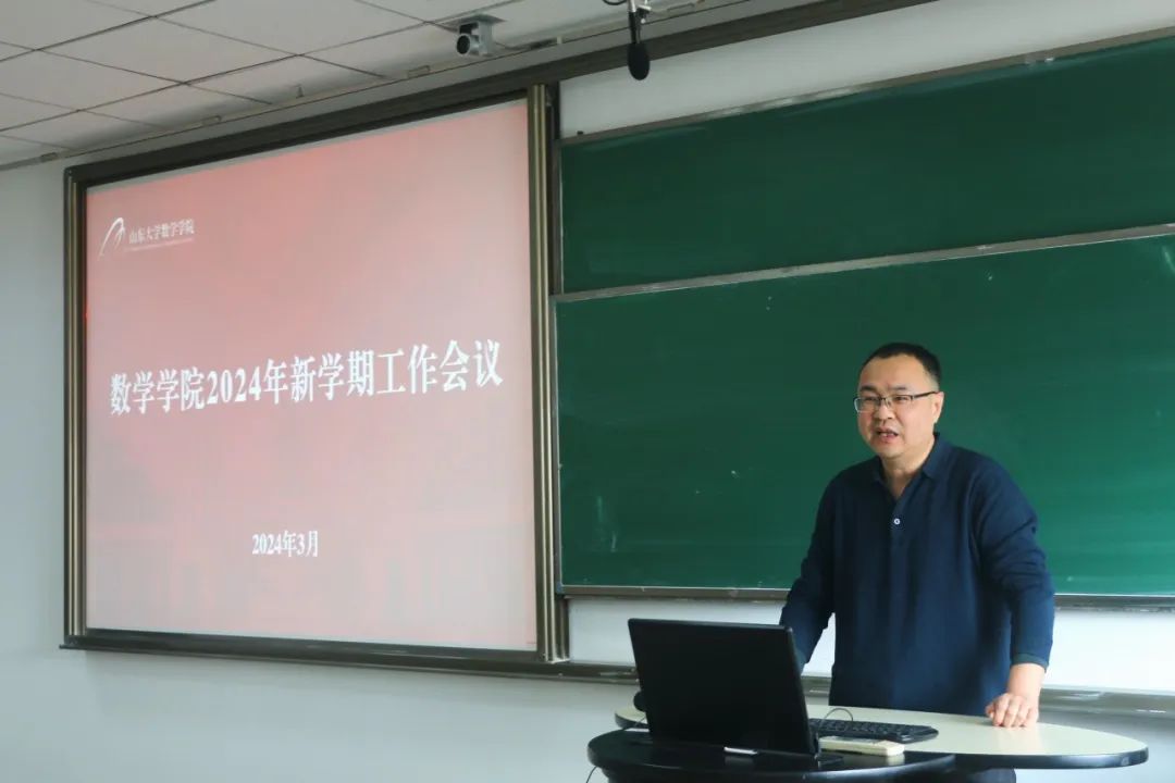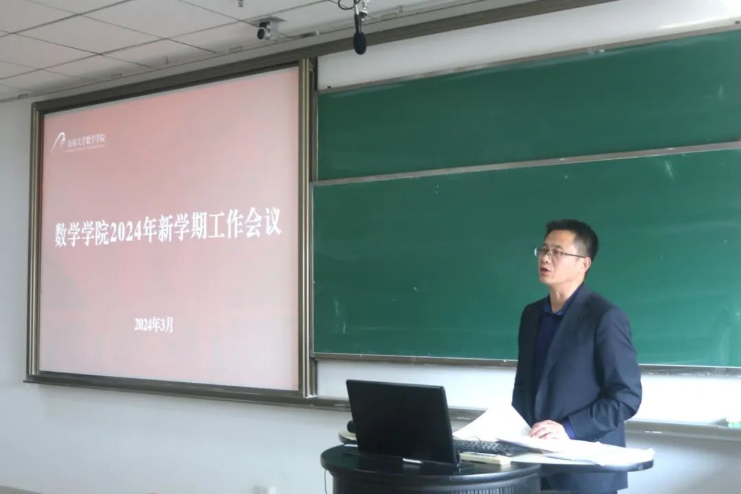 党委书记王光辉传达了学校新学期会议精神,对学院工作要点做了简要概述,指出要办好潘承洞校长诞辰90周年纪念活动、第十五届全国大学生数学竞赛决赛与第二十一届中国研究生数学建模竞赛,强调要重视培养方案修订、加大人才引育力度、规范科研经费使用等。