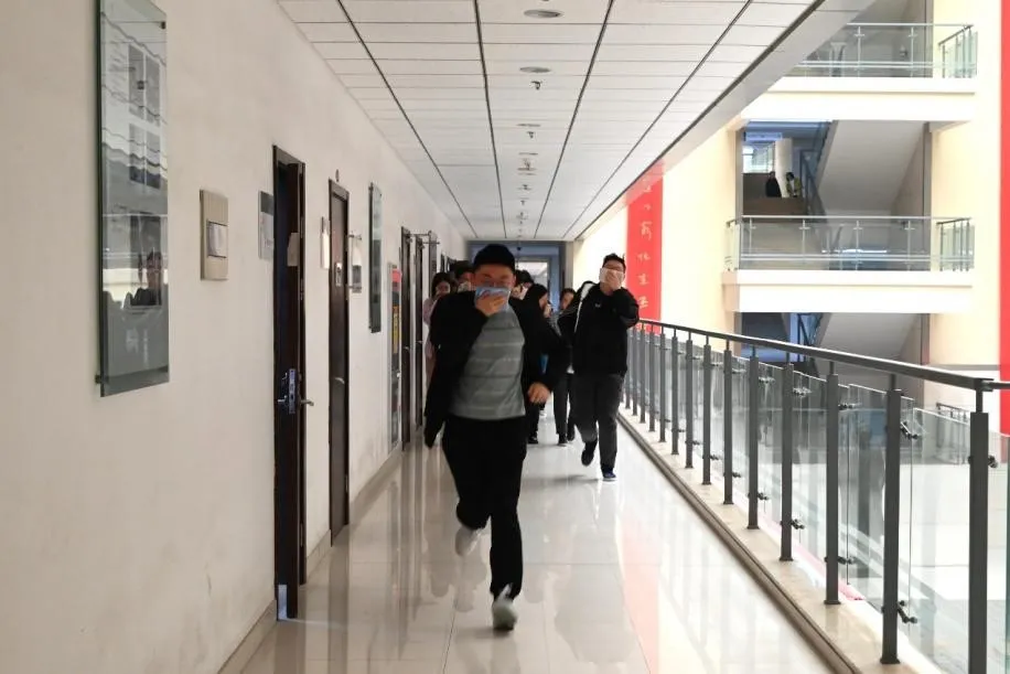 演练开始前,学校党委保卫部杜春兴科长向学院师生详细讲解了疏散通道位置、基本应急逃生技能和灭火器使用要领等。15时30分,演练正式开始,伴随消防警报响起,学院启动应急预案,灭火、引导等各小组就位,对初起火灾进行有效处置,参训师生通过消防楼梯有序疏散至楼前安全区域。
