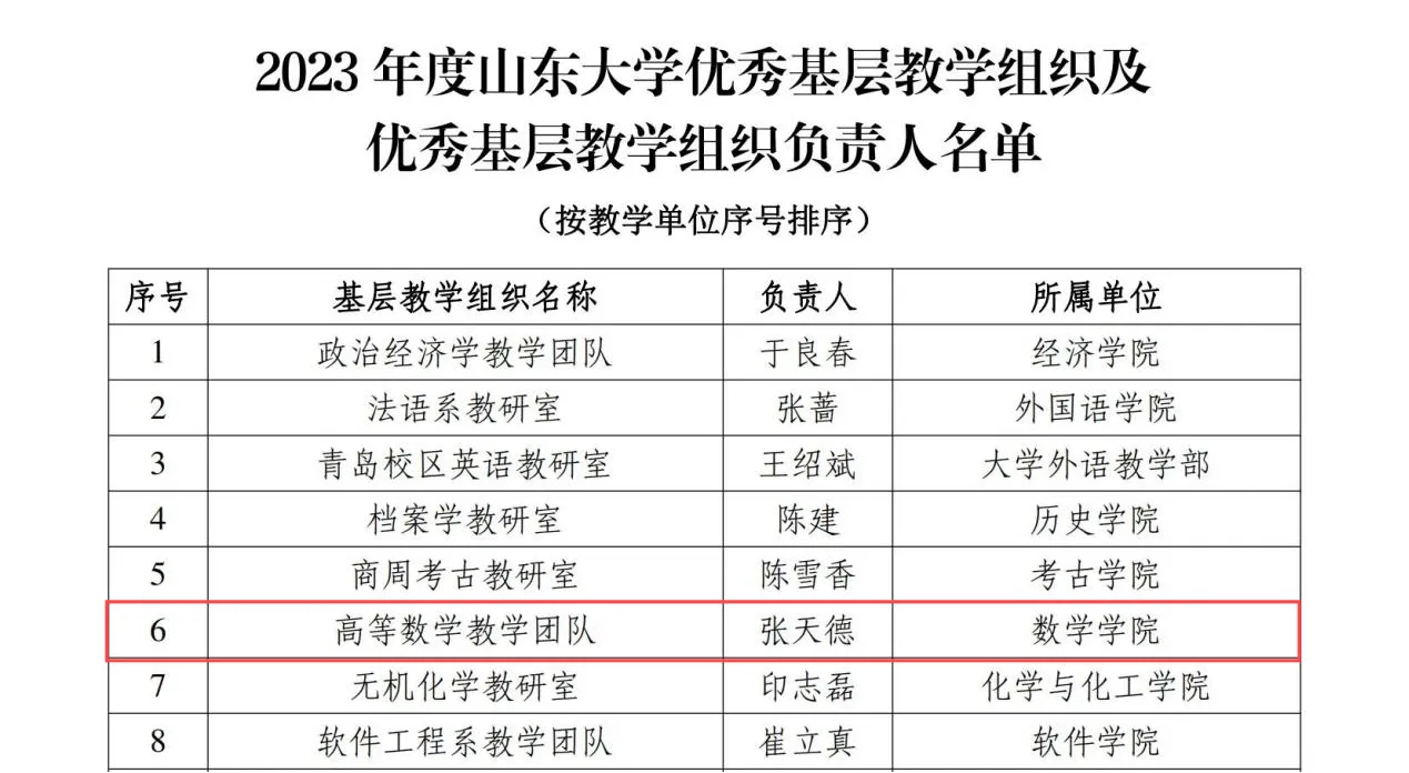 近日,在BB贝博艾弗森官网组织的“2023年度优秀基层教学组织及优秀基层教学组织负责人”评选中,BB贝博艾弗森官网高等数学教学团队凭借扎实的工作表现,荣获“BB贝博艾弗森官网优秀基层教学组织”称号,BB贝博艾弗森官网张天德教授被评选为“BB贝博艾弗森官网优秀基层教学组织负责人”。此次评选旨在表彰在教学和科研工作中表现突出的基层教学组织和个人,以进一步推动BB贝博艾弗森官网整体教学质量的提升。