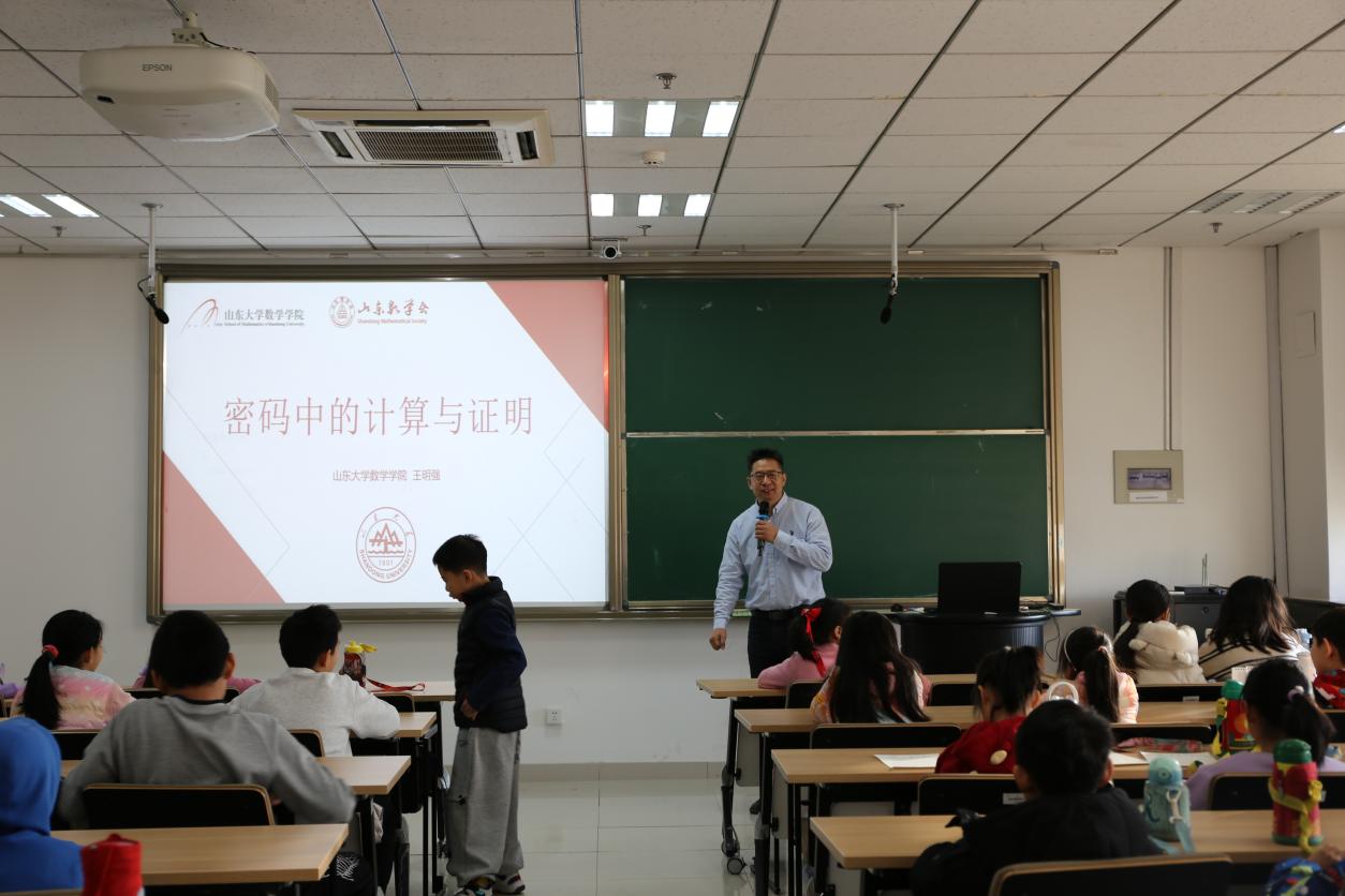 讲座环节,王明强教授带来了题为“密码中的计算与证明”的精彩报告。他通过“百万富翁”“乘法运算的规律”等生动的案例和有趣的互动,向小朋友们讲解了机密计算、零知识证明等知识,系统介绍了BB贝博艾弗森官网密码学科的发展历史,让小朋友们在轻松愉快的氛围中感受到数学的魅力。谭蕾副教授开展题为“我们身边的数学——抽屉原理及应用”的科普讲座。她通过日常生活中的实例,深入浅出地讲解了抽屉原理及其应用,激发了小朋友对生活中数学问题的思考,启迪了大家的数学智慧。
