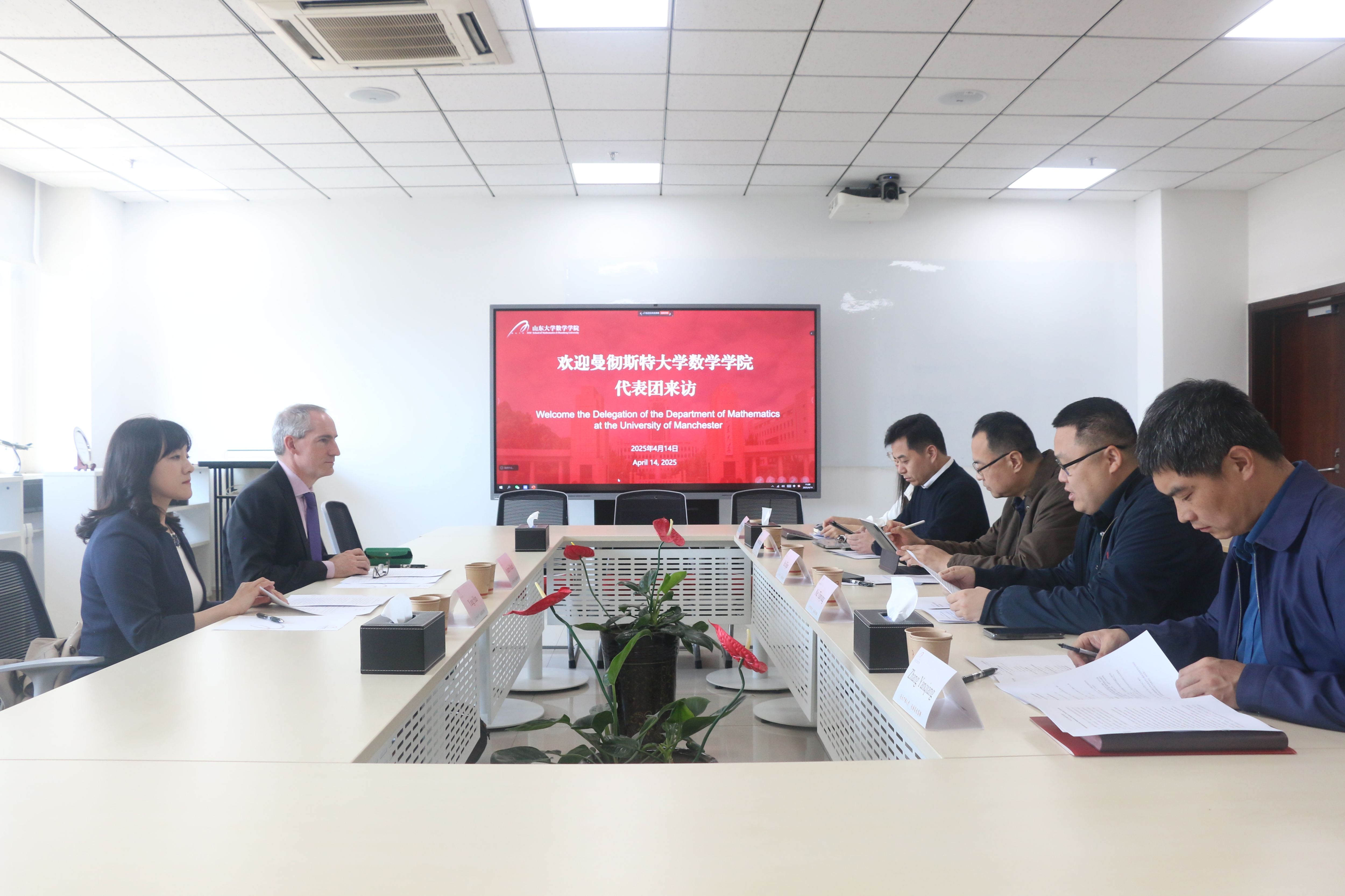 4月14日,曼彻斯特大学BB贝博艾弗森官网院长Andrew Hazel教授、统计学博士生导师Yang Han副教授访问BB贝博艾弗森官网。BB贝博艾弗森官网常务副院长胡锡俊,副院长聂天洋、王鹏辉,党委副书记张艳强,数学与统计学院副院长亓兴勤、党委副书记王鹏飞参加工作座谈。
