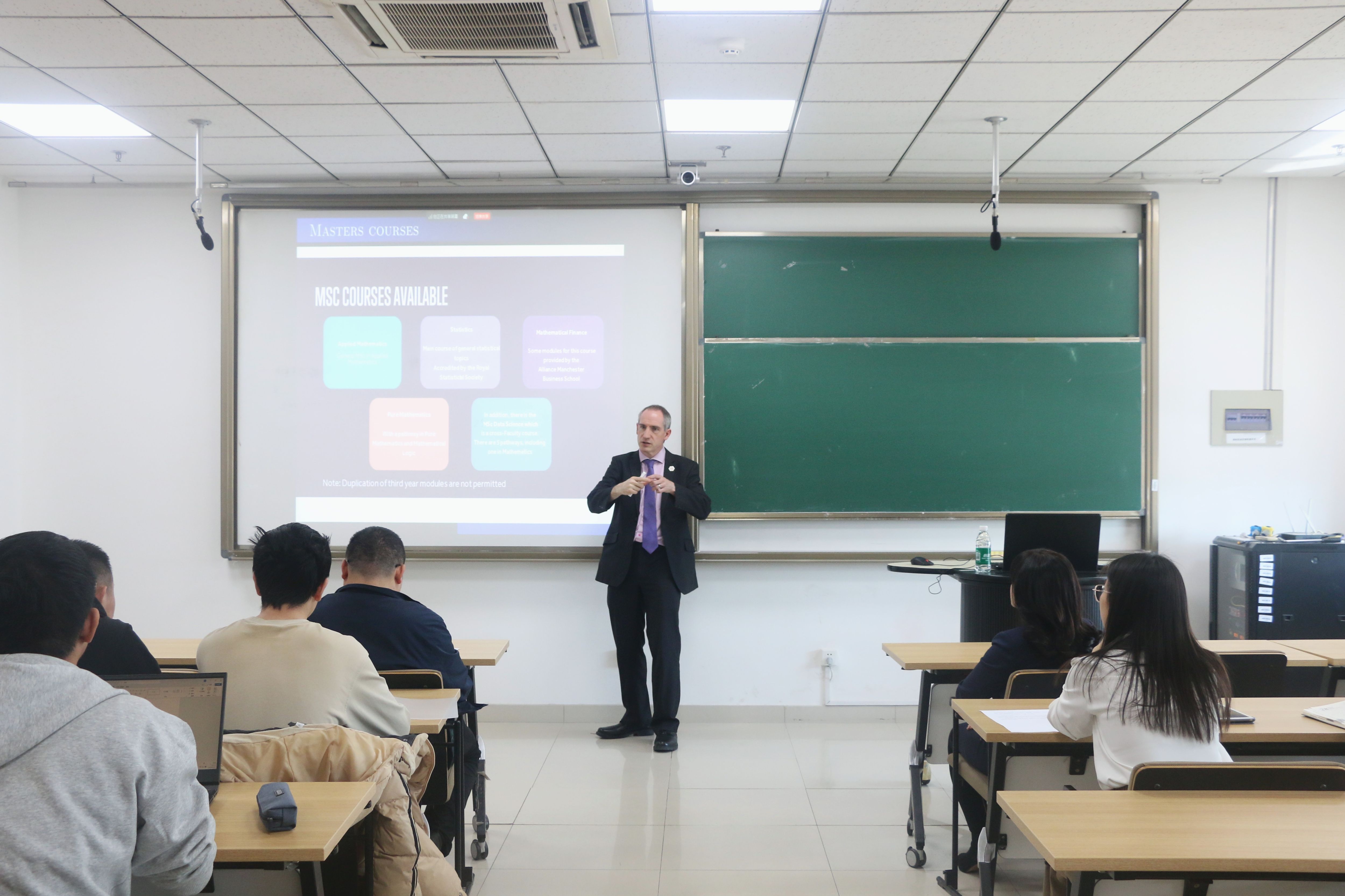 会后,曼彻斯特大学与BB贝博艾弗森官网“2+2”双学位联合培养项目宣讲会在BB贝博艾弗森官网成功举办。Andrew Hazel和Yang Han为与会师生详细介绍了曼大历史、曼大BB贝博艾弗森官网的学科实力和“2+2”项目信息,并在答疑环节针对项目录取条件、生活成本等问题进行耐心解答,现场反响积极。宣讲会采取线上、线下相结合的形式,BB贝博艾弗森官网、数学与统计学院领导班子成员、相关工作人员和学生代表参加会议。