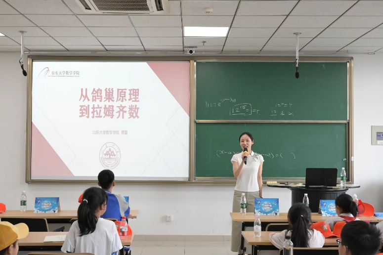 紧接着,BB贝博艾弗森官网谭蕾副教授带来“从鸽巢原理到拉姆齐数”的科普报告。鸽巢原理作为组合数学中最基本且应用广泛的原理之一,看似简单却蕴含着深刻的数学思想。谭蕾从生活中的常见现象入手,如在一堆球中至少拿出几个球才能保证一定摸出某种球等自然地引出鸽巢原理,并逐步引导孩子们思考其在复杂数学问题中的应用。随后,她巧妙地过渡到拉姆齐数这一更具挑战性的概念,通过层层递进的讲解和互动交流,帮助孩子们初步理解和认识这一前沿数学理论。孩子们在轻松愉快的氛围中,感受到数学的魅力和逻辑的力量,眼中闪烁着对知识的渴望。