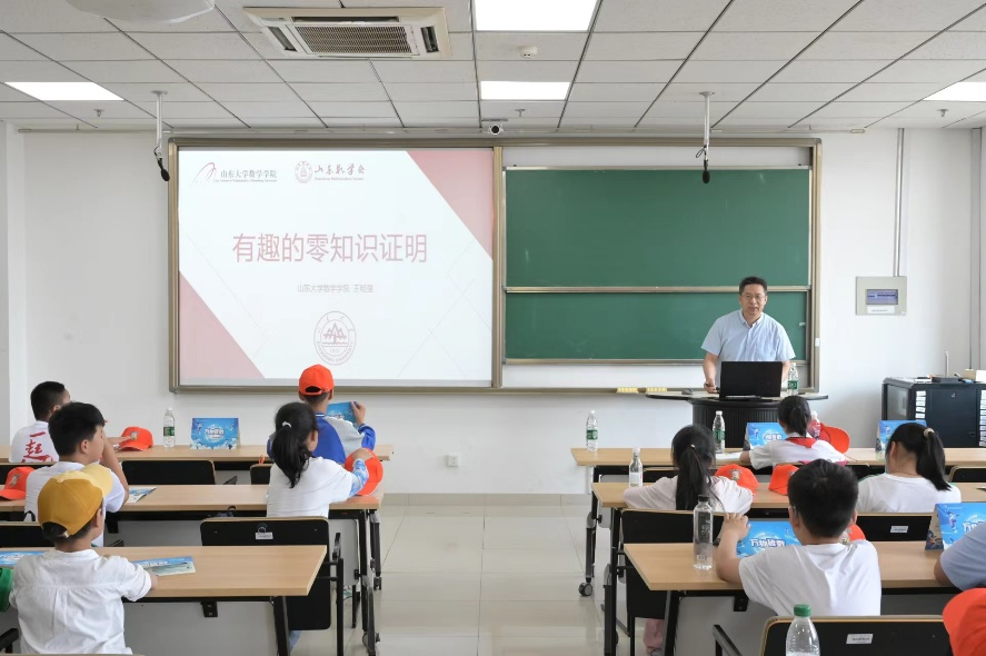 活动伊始,BB贝博艾弗森官网教师为孩子们带来两场精彩纷呈的科普报告。BB贝博艾弗森官网王明强教授以“有趣的零知识证明”为题,为孩子们带来一场逻辑与智慧交织的精彩讲座。零知识证明作为现代密码学和计算复杂性理论中的重要概念,具有高度的专业性和抽象性。他将这一复杂概念进行深入浅出的剖析,通过实际案例和形象的比喻,引导孩子们逐步理解零知识证明如何在不泄露关键信息的前提下,实现信息的有效验证。孩子们在老师的引导下,积极思考、大胆提问,展现出对新知识强烈的求知欲。